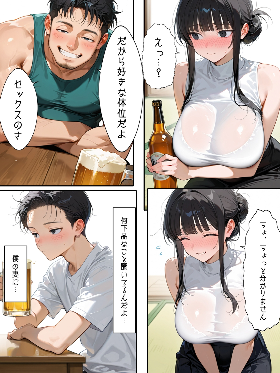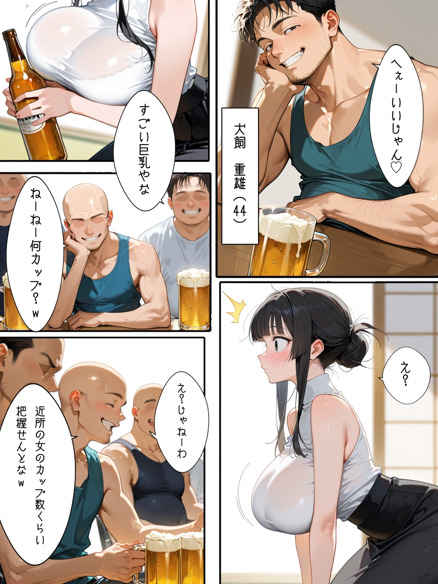 • 【エロマンガ】地元の消防団との飲み会で酔わされた爆乳人妻の運命が…
